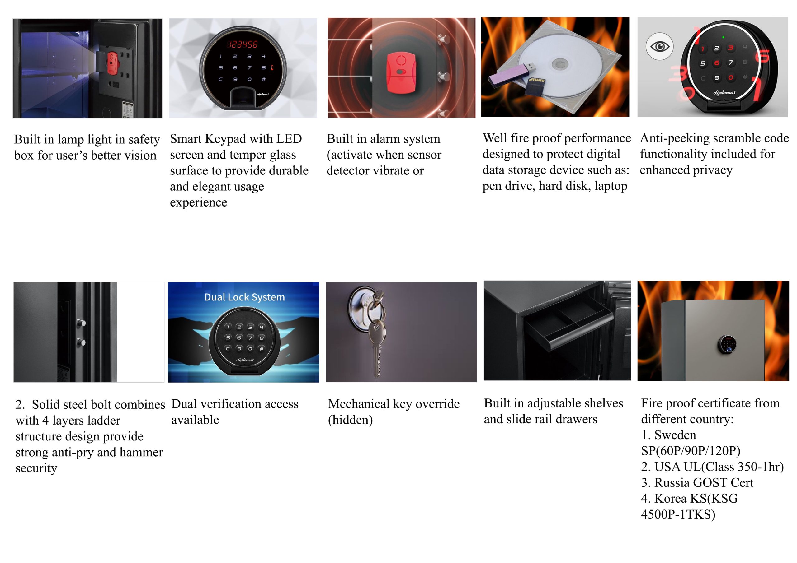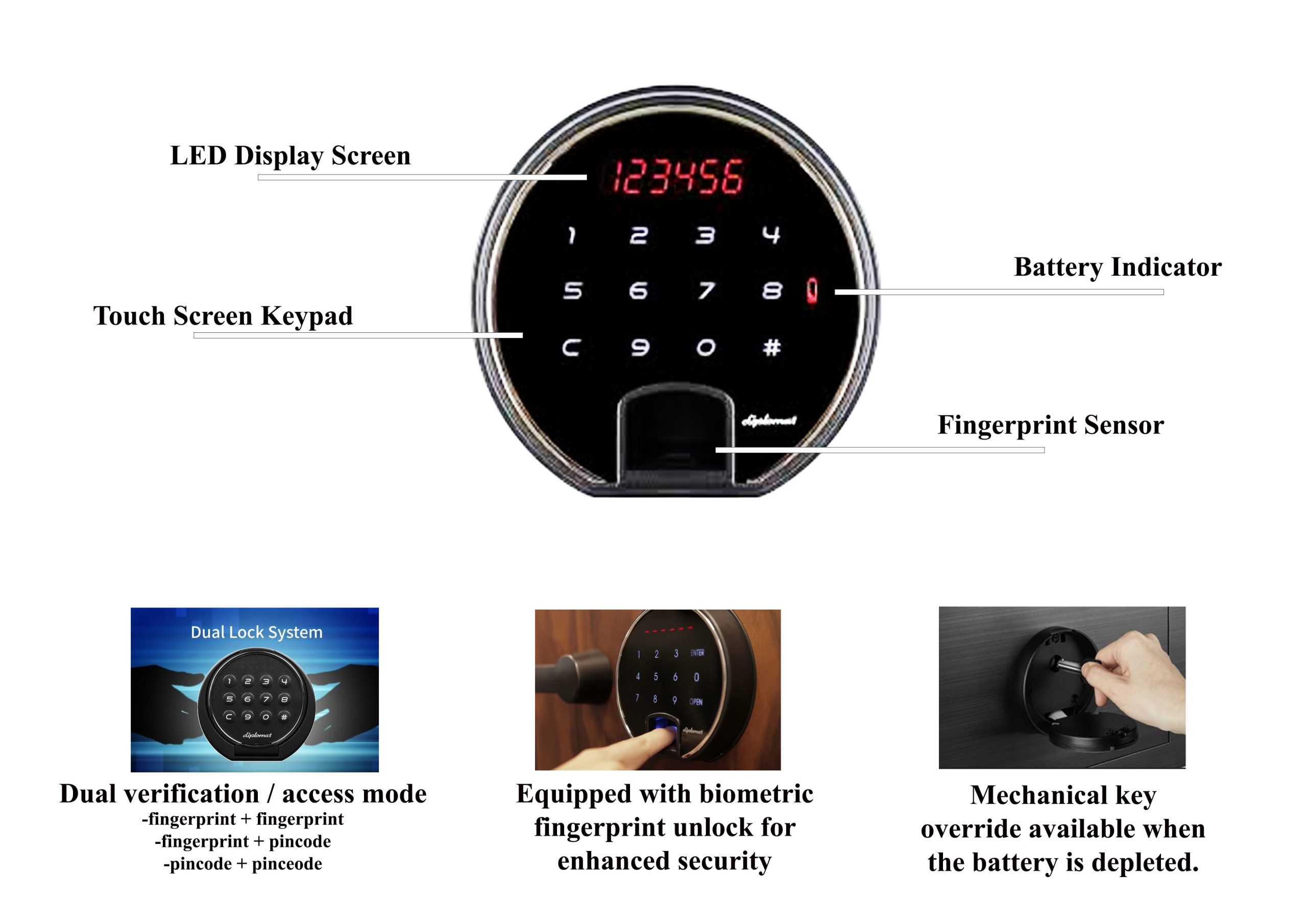 Solid steel bolt combines Dual verification access with 4 layers ladder structure design provide strong anti-pry and hammer security