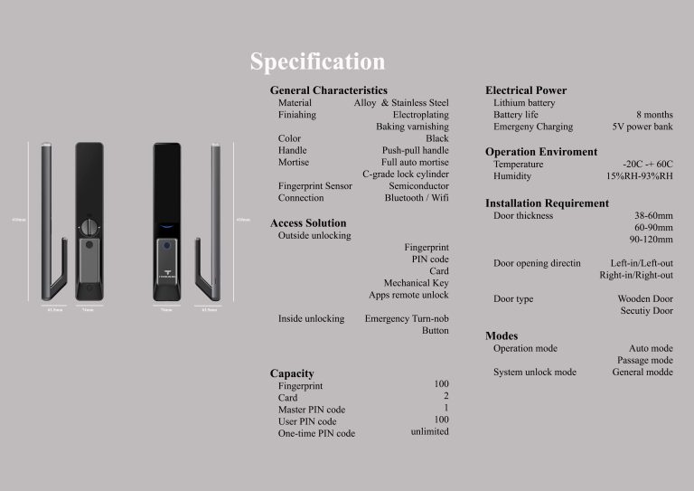 The smart lock supports up to 100 unique fingerprint entries, making it suitable for both residential and commercial use. Whether it’s a large family, office staff, or authorized personnel, each user can register their fingerprint for quick, secure access. The fingerprint scanner is designed for fast recognition (typically <0.5 seconds) and high reliability, even with slightly dirty or wet fingers.