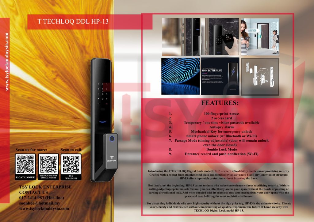 For those who value not only security but also elegance and sophistication, HP-DV is the ultimate choice. Elevate your home security to a level that befits your refined taste and discerning lifestyle. Welcome to a new era of luxury security with TECHLOQ Digital Lock model HP-DV.