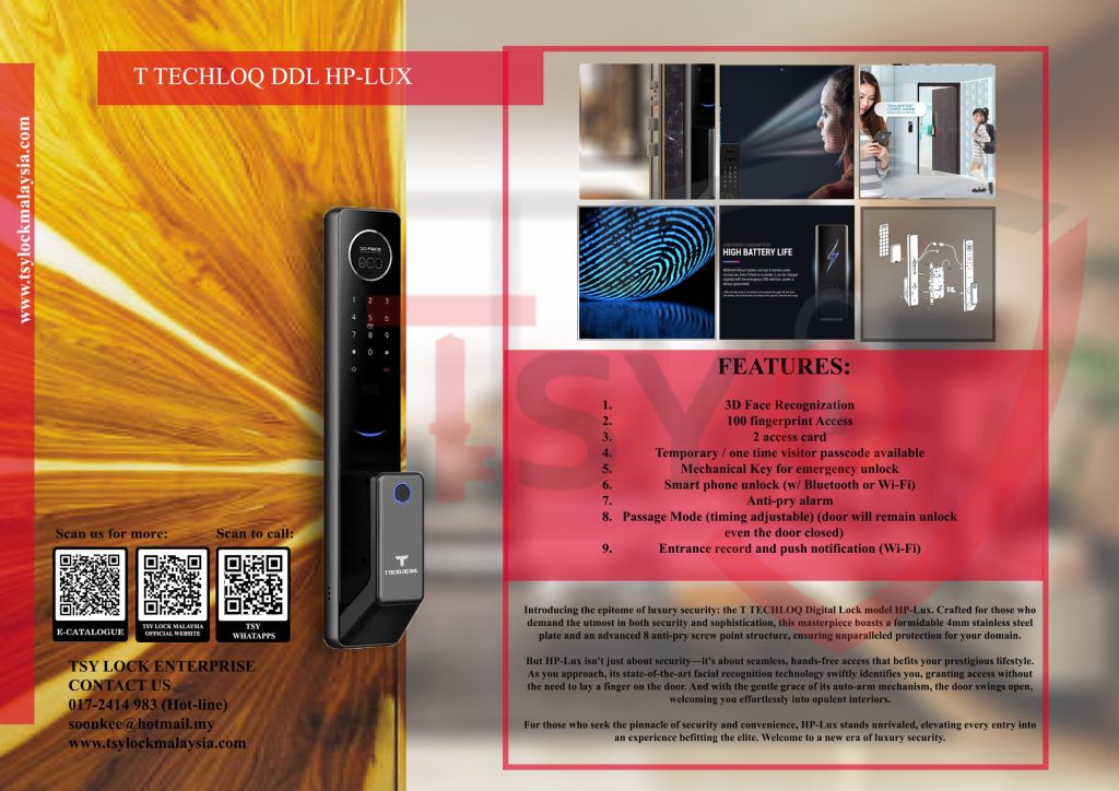 For those who value not only security but also elegance and sophistication, HP-DV is the ultimate choice. Elevate your home security to a level that befits your refined taste and discerning lifestyle. Welcome to a new era of luxury security with TECHLOQ Digital Lock model HP-DV.