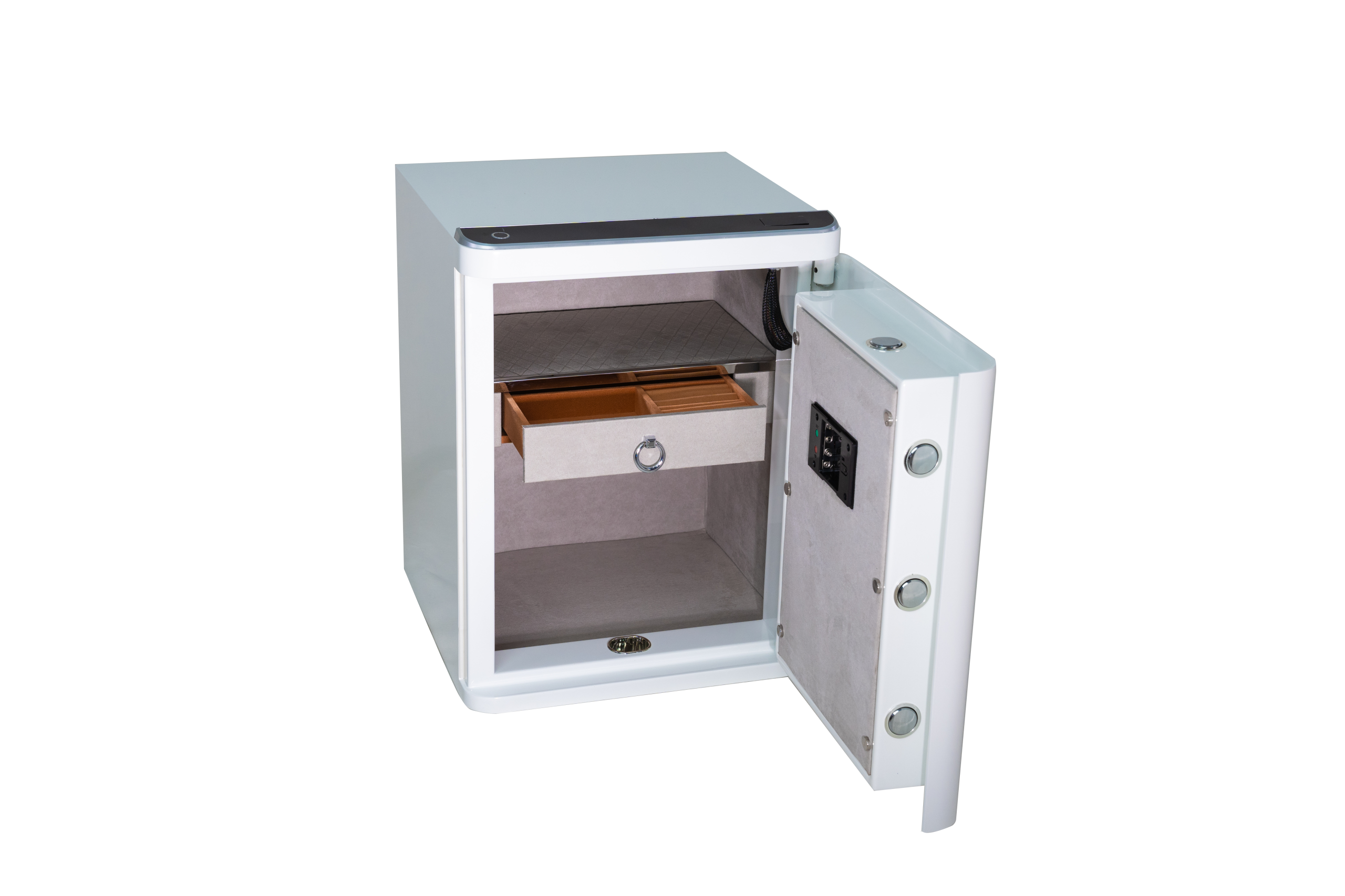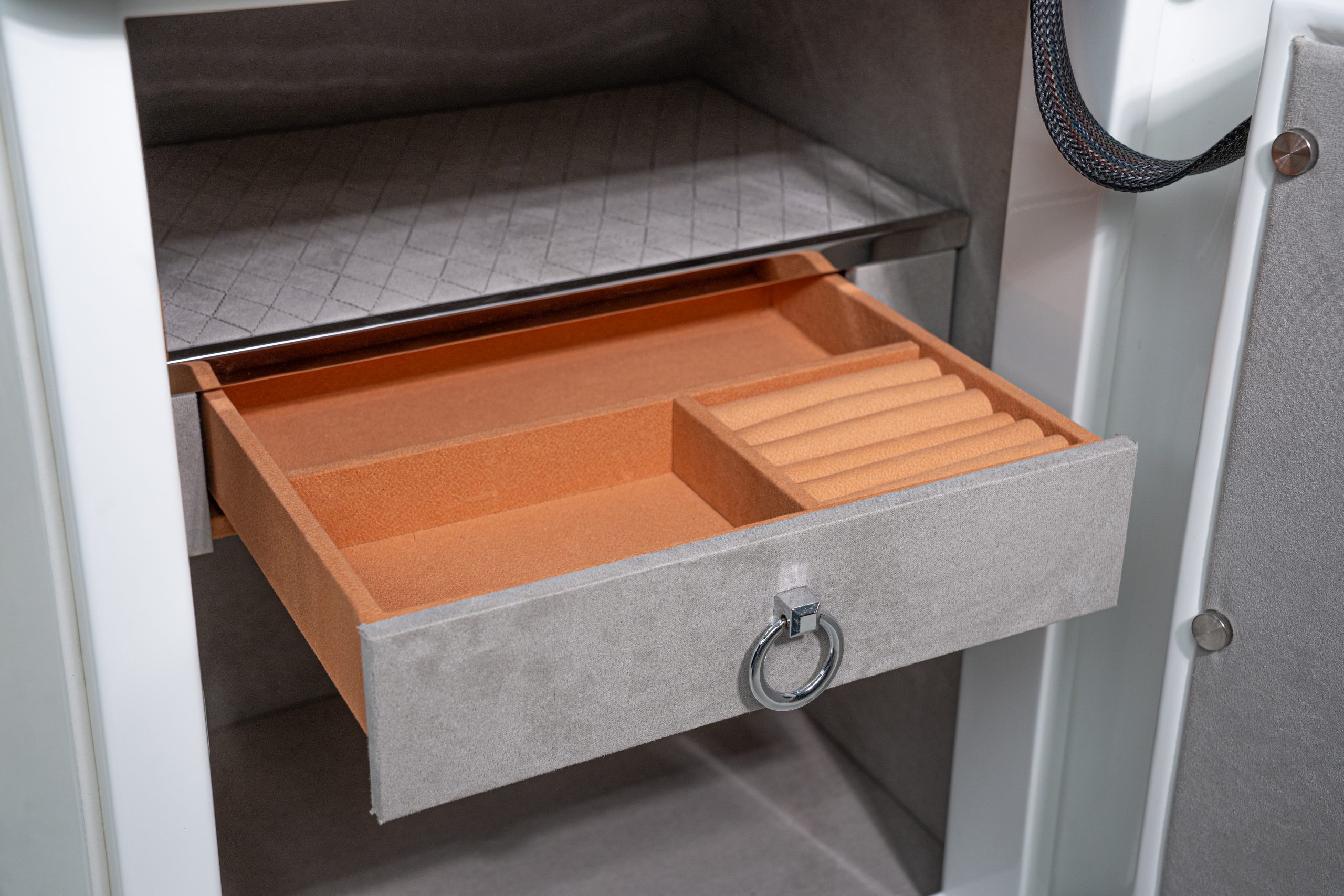 We built it with an obsession for detail: A soft fabric interior to safeguard delicate jewelry and timepieces from scratches, advanced biometric access, and 1-hour fire protection for important documents.