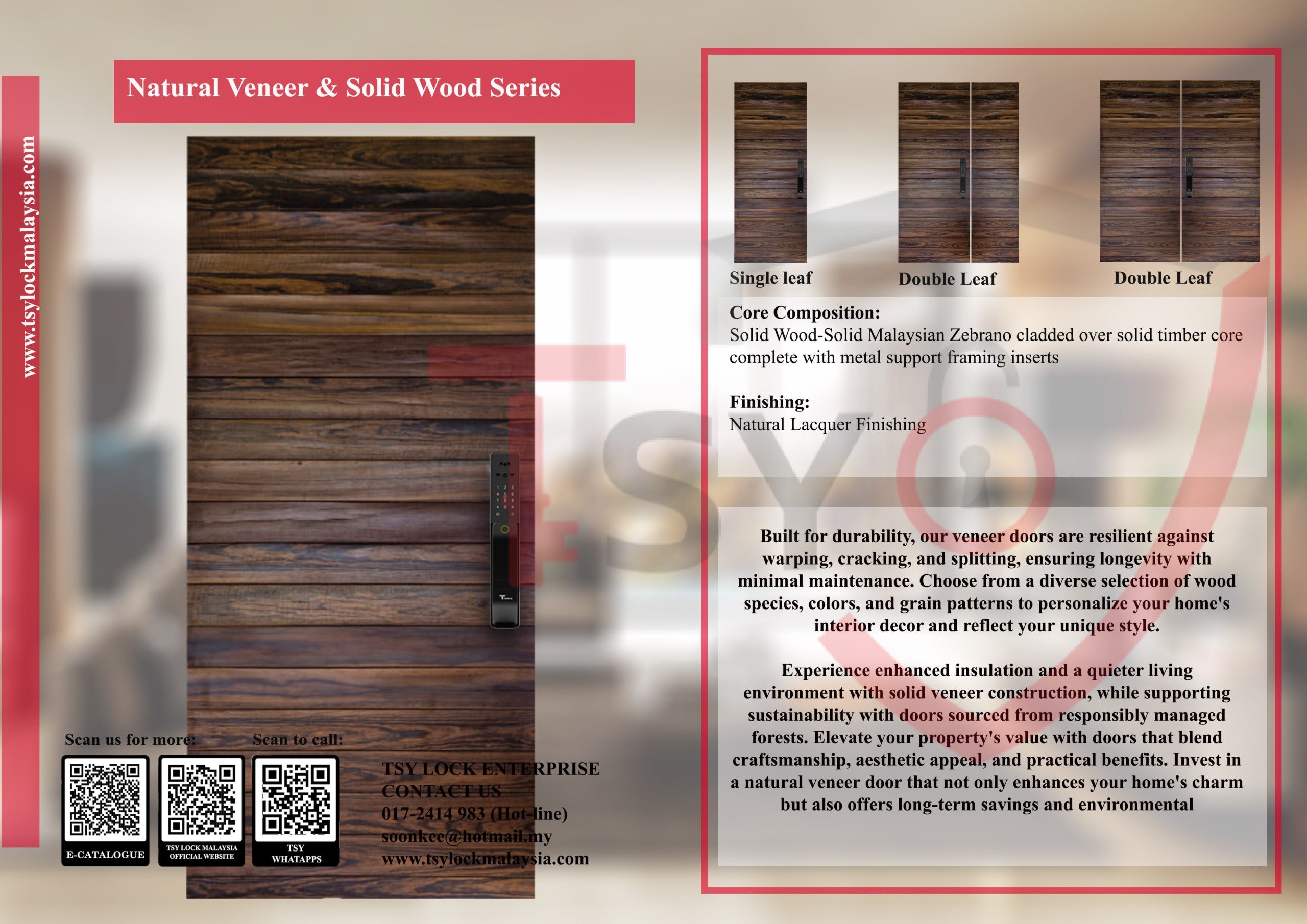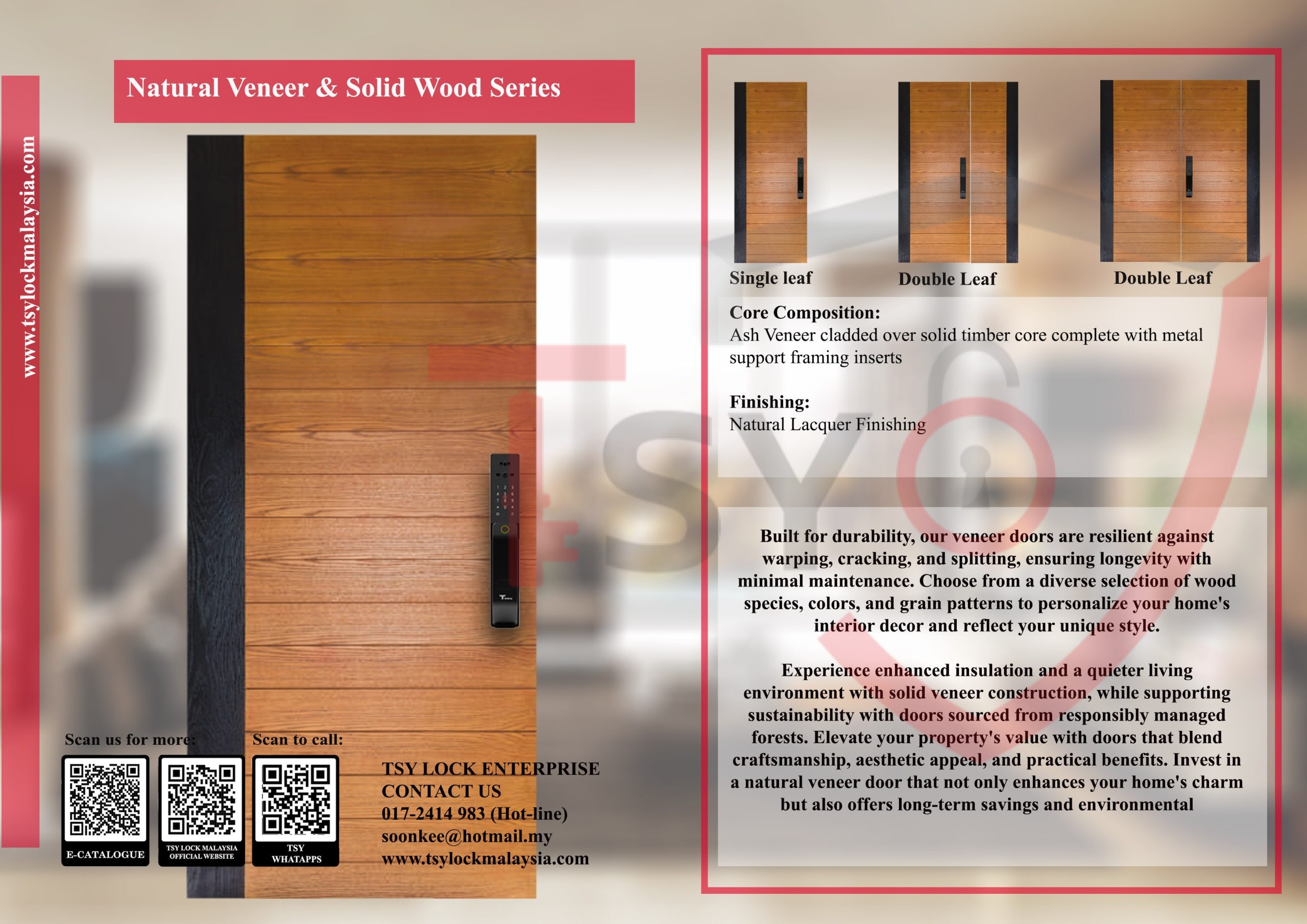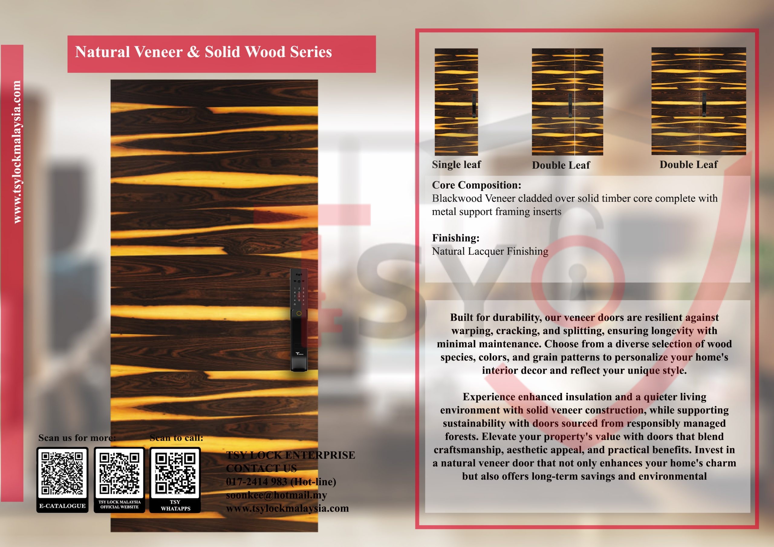 Engineered with a solid wood or composite core, our doors offer excellent durability, noise control, and added protection.